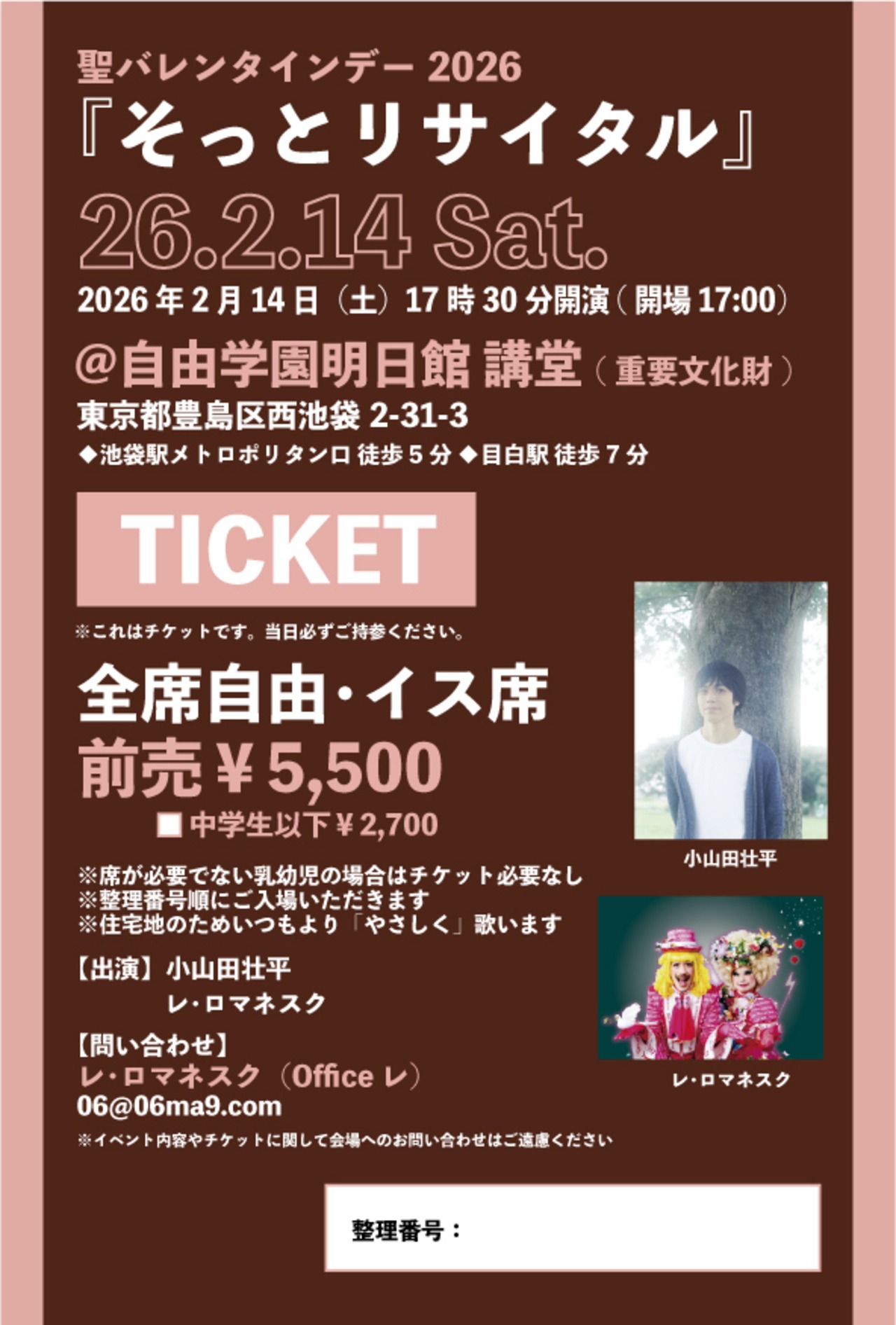 2026年2月14日(土)17時30分開演 (開場17:00)