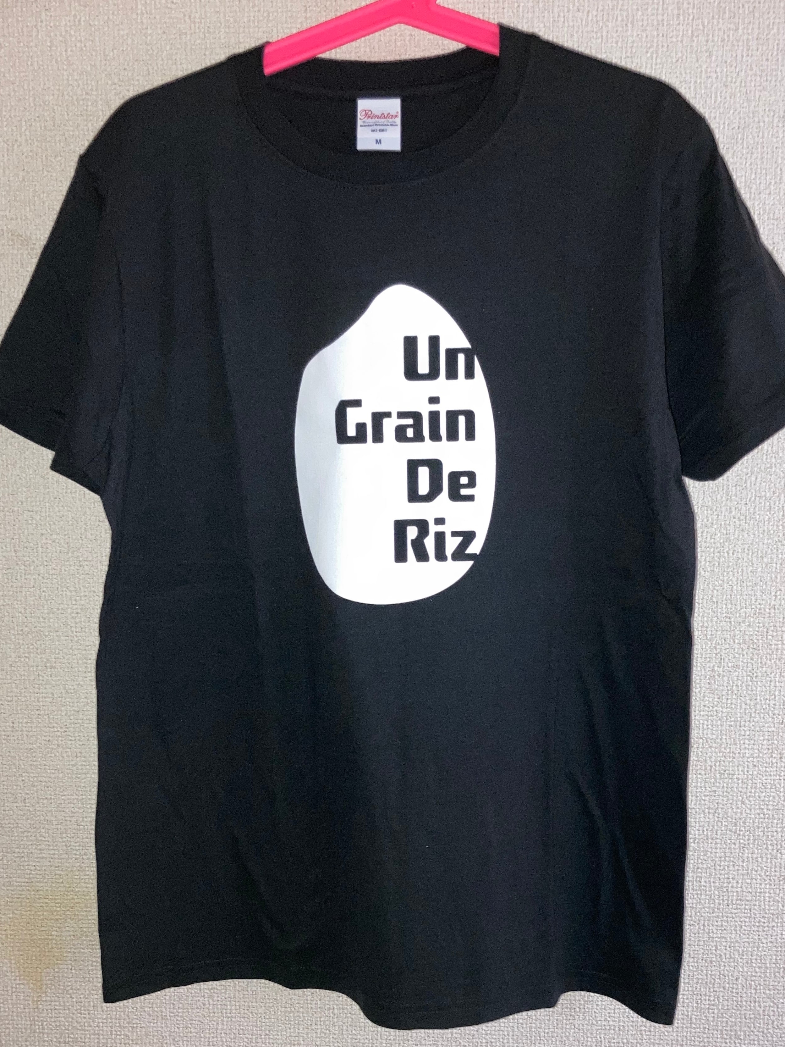 フランス語で「一粒の米」と書いてある(アングランドリ)、 レ・ロマネスク初の黒Tシャツです。 打首獄門同好会との対バン記念に数量限定で作りました!